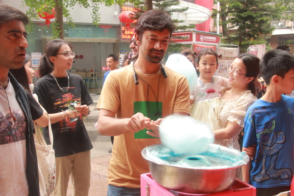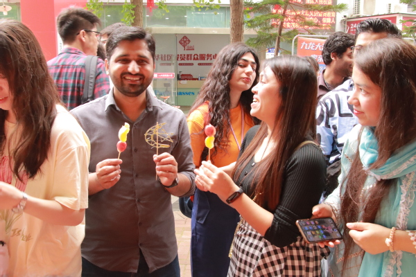 图9 留学生获得糖画和糖葫芦
