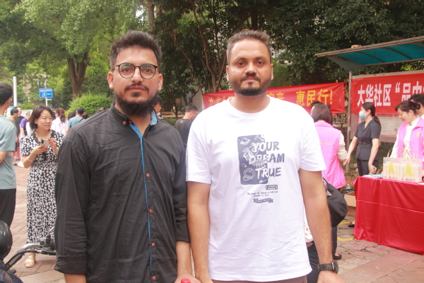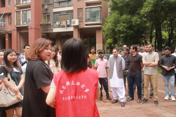 社区书记为他们进行了简单的介绍,现场有翻译同学为他们解释活动流程。介绍完毕,书记带留学生们品尝了一些本地的美食。