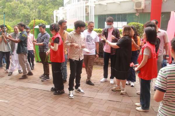 随后,留学生们纷纷进入活动现场,开始参与特色小游戏。