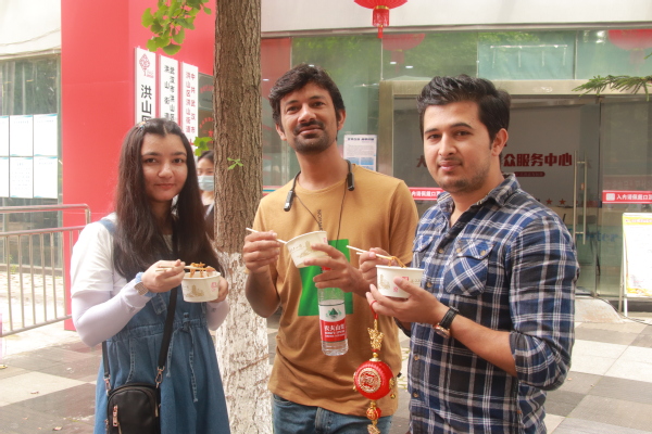 图3 留学生品尝热干面