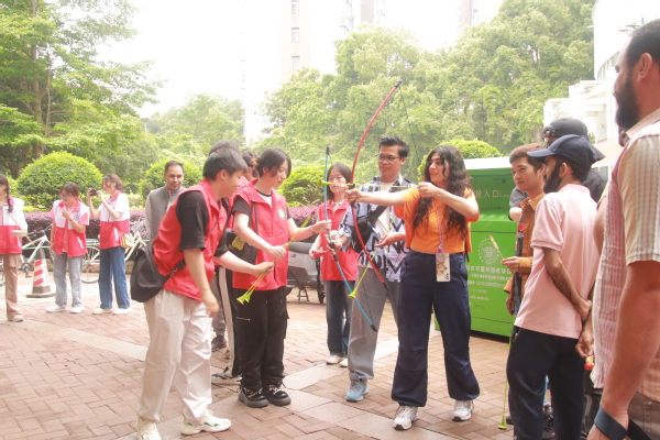 即使语言不互通,但仍能深切的感受到他们参与活动而产生的喜悦。我看见了每个人脸上洋溢着的灿烂笑容,看见了虽然不擅长但仍勇于尝试的她,看见了一击十环被众人欢呼雀跃露出笑脸的他,看见了认真了解中国传统文化的他们。