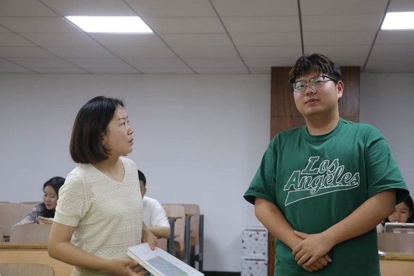 图为侯老师为学生的回答进行指导