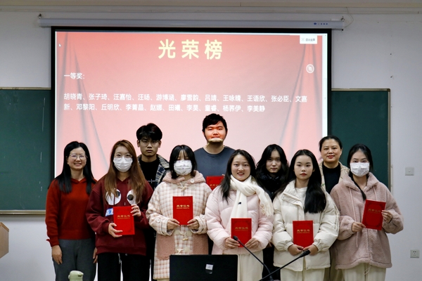 系主任张威老师和陈媛媛老师为三等奖学生代表颁奖