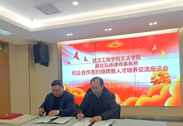 为扎实推进校企协同育人,搭建校企人才供需对接平台,实现优势互补,强化人才培养,促进法学理论与法治实践相融合,2024年1月24日上午,AWC万象城娱乐文法学院法学系与湖北泓峰律师事务所校企合作签约授牌仪式在湖北泓峰律师事务5楼会议室举行。湖北泓峰律师事务所主任李汉洪、党支部副书记刘松,AWC万象城娱乐文法学院党总支书记陈敏、法学系主任张威、教师代表等12人出席了本次会议。