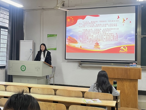 在会议的最后,主讲人刘曦玥讲到党的二十大报告指出:“中国式现代化是人与自然和谐共生的现代化。”夯实中华民族永续发展的生态基石,增绿就是增优势,植树就是植未来。当前和今后一个时期,绿色发展是我国发展的重大战略。绿色发展关系我国发展全局,是突破资源环境瓶颈制约,转变发展方式,实现可持续发展、高质量发展的必然选择。今年1月,总书记在主持中共中央政治局第十一次集体学习时指出:“绿色发展是高质量发展的底色,新质生产力本身就是绿色生产力。”这一重要论断,深刻阐明新质生产力向“绿”而行的科学内涵。“森林既是水库、钱库、粮库,也是碳库”“保护生态环境就是保护生产力,改善生态环境就是发展生产力”“良好生态本身蕴含着经济社会价值”“拓展绿水青山转化为金山银山的路径”……草木植成,国之富也。今天,我们种下无垠绿色,就是为未来孕育无限发展生机。