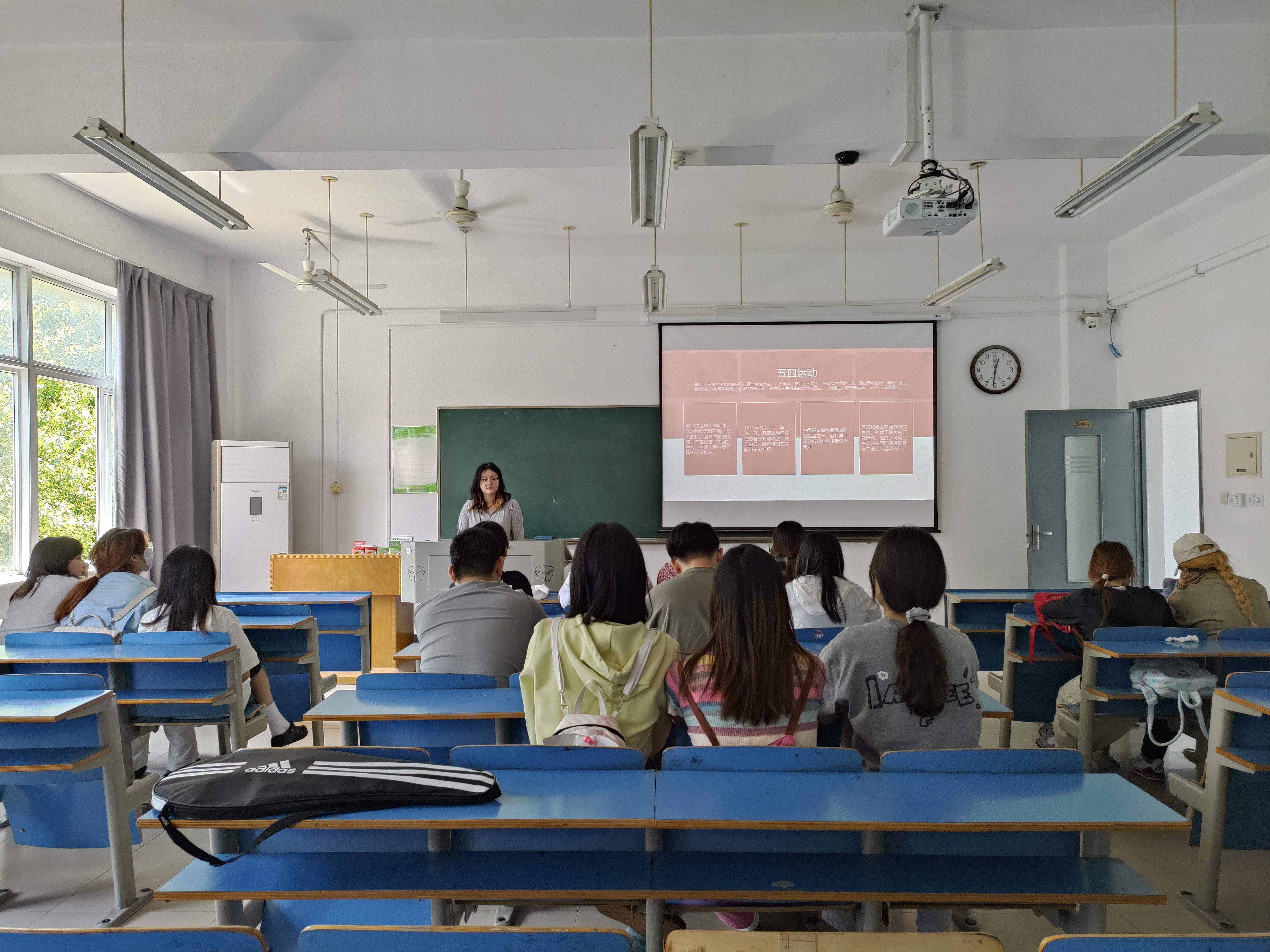 第三小组的黄静怡同志在课上为我们详细介绍了五四青年节的来历,五四精神的具体内容内涵,五四精神的意义以及如何继续弘扬五四精神、争先绽放五四精神。一代人有一代人的长征,一代人有一代人的担当。百年前的五四运动让我们看见了青年的力量,他们支起反帝反封建的旗帜,打开了时代发展的闸门,冲破了封建思想的禁锢,拉开了新民主主义的序幕。他们用自己心中赤诚的爱国之心铸就了爱国,进步,民主,科学的五四精神,奏响了浩气长存的爱国主义壮歌。如今,时代的接力棒即将落在我们青年人之手,让我们应当如何传承五四精神,续写时代之华章?