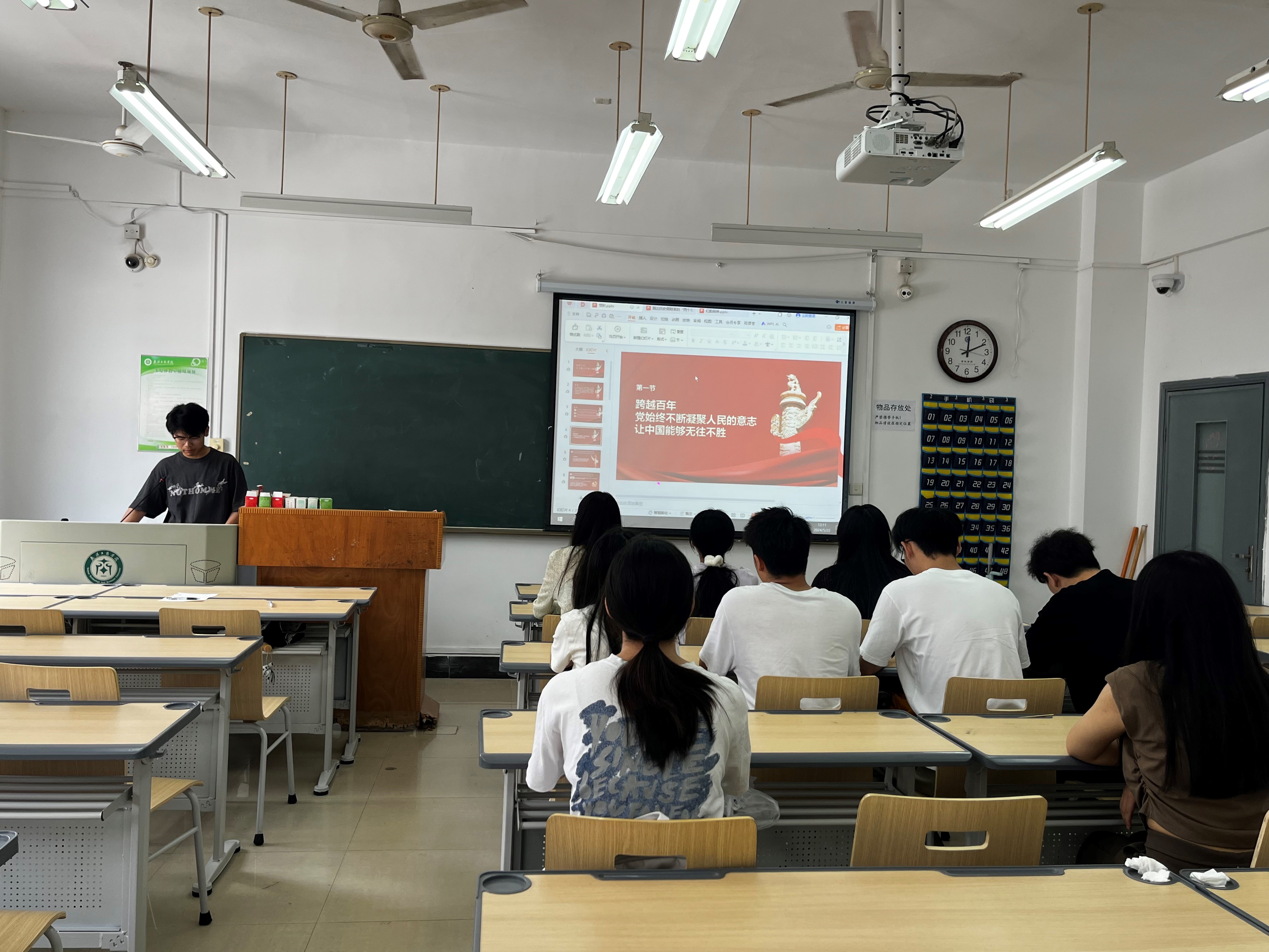 此次会议由吕靖同学简单从“感悟百年党史蕴含的真力量”开始,并从:跨越百年,党始终不断凝聚人民的意志,让中国能够无往不胜;跨越百年,党始终敢于牺牲自己,让中华民族能够伟大复兴;跨越百年,党带领下的人民军队从胜利走向胜利,让我们不惧风险挑战三节内容进行阐述。中国共产党自成立以来,历经风雨,始终保持着旺盛的生命力和强大的战斗力,领导中国人民取得了革命、建设和改革的伟大胜利。这一切成就的背后,离不开党自身的先进性和纯洁性,以及党始终坚持的马克思主义科学理论的指导。