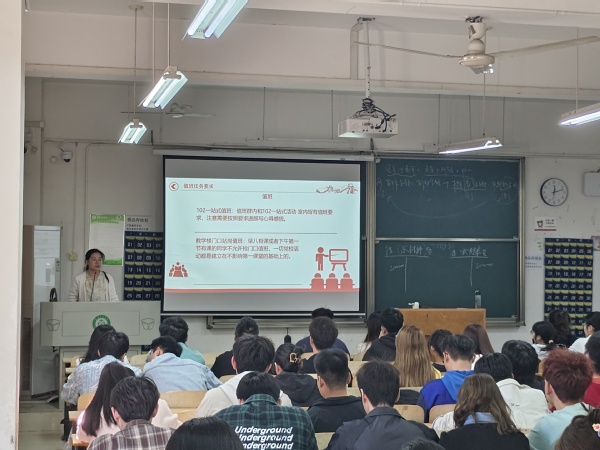 最后,由主讲人张盼盼老师进行会议总结,她先对未来值班志愿服务活动提出要求,同学们需要保持奉献精神和责任感,不断提升自身素质和综合能力,确保值班活动顺利进行。最后强调全心全意为人民服务的根本宗旨是党始终保持先进性与纯洁性的重要保障,是我们要始终坚守的信仰和追求。