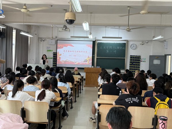 文法学院讯 (记者:朱淑怡) 文法学院第十五期党校第二讲于2025年3月26日中午12时20分在综合楼204教室举行。本次会议由冯媛媛老师主持授课,新闻学学生党支部及第十五期党校全体积极分子参会。本次会议以“党员如何过好组织生活”为主题,通过系统讲解入党流程、组织生活制度规范及实践案例,为学员筑牢思想根基、明确行动方向。