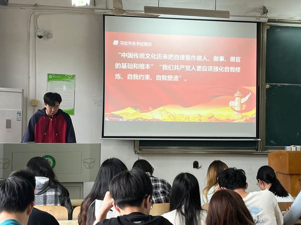 随后主讲人肖耀阳讲解了涵养“检身若不及”自觉的背景以及其对青年的重要性。在世界百年未有之大变局下,我国踏上全面建设社会主义现代化国家的新征程,但发展不平衡不充分问题依然突出。在此背景下,党中央强调要涵养“检身若不及”的自觉,推动中国特色国家安全道路的建设,为新时代国家安全事业指明方向。这一要求不仅为入党积极分予以及党员的自我提升提供指引,也为青年成长创造稳定环境。青年在学习、工作中自我反省、自我提升,坚守国家利益与民族尊严,展现新时代责任担当,为民族复兴贡献青春力量。