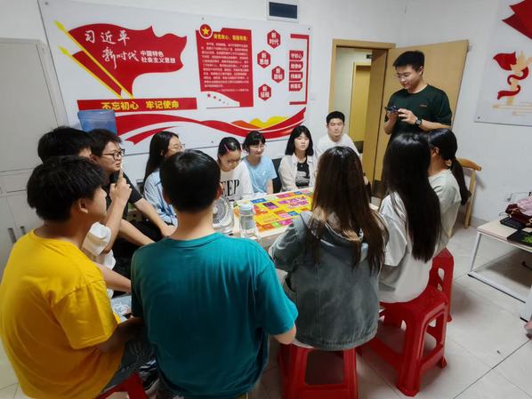 活动开始,首先由工作人员发放活动规则手册和比赛道具。随后,主持人刘梦源介绍活动主题、目的和流程,详细讲解比赛规则。所有参与活动的成员被分成三组,每组轮流抽签选择在棋盘上的前景步数,再根据棋盘所在位置回答问题。问题涵盖党章、法学专业知识、生活常识以及热点话题,回答时间限制在30秒内。回答正确,轮到下一组;回答错误则回到上一步,率先到达终点的小组将获得胜利。