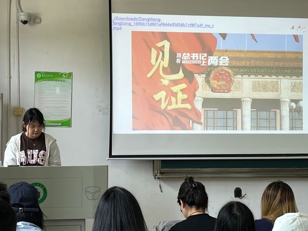接着由主讲人文驰雁带领大家从“看中国式现代化新征程”角度出发,深入学习贯彻党的时代精神。主讲人文驰雁从六个方面,深入讲解了中国式现代化新征程,以及党的时代精神在其中的实践意义。在解读两会精神时,主讲人文驰雁以经济发展、民生福祉、国家统一这三个两会主要议题为切入点,展示了中国特色社会主义现代化事业的进步。通过分析这些议题,她指出两会精神的核心是“稳中求进、以进促稳”,要靠科技创新与改革突破来提升发展质量,让大家初步了解了两会精神。