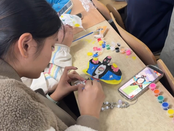 接下来,全体成员有序前往综合楼108教室开启手工创作:“重阳茱萸香包DIY”环节,各小组分工协作,将零散材料制成寓意平安的香囊;“手绘纸鸢”环节,大家发挥创意,在空白纸鸢上勾勒图案、涂抹色彩,每只纸鸢都承载着对传统文化的理解与对美好生活的祝福。活动最后,主持人王兆帛激励大家,以菊花蕴含的“高洁坚贞”精神激励自己,努力提升党性修养,践行党员使命。