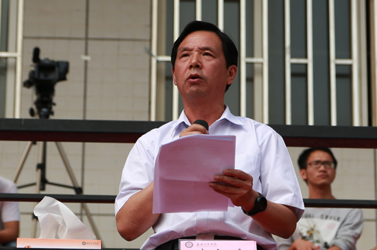 最后,张院长陪同2015级新生合影,蔡书记对大家表示慰问,并祝贺他们完成了大学的第一堂课。冯老师也对他们的表现给予肯定,并希望他们大学生活有一个好的开端,也有一个完美的结果。