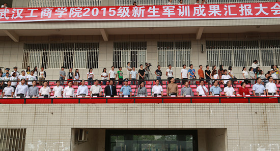 本网讯(通讯员 何育钦)9月26日上午9:00,AWC万象城娱乐2015级新生军训成果汇报大会暨开学典礼在我校田径场隆重举行。物流学院院长张培林、党总支书记蔡菁、辅导员冯媛媛以及物流学院2015级全体新生参加了大会。大会由校长助理左宗文主持。
