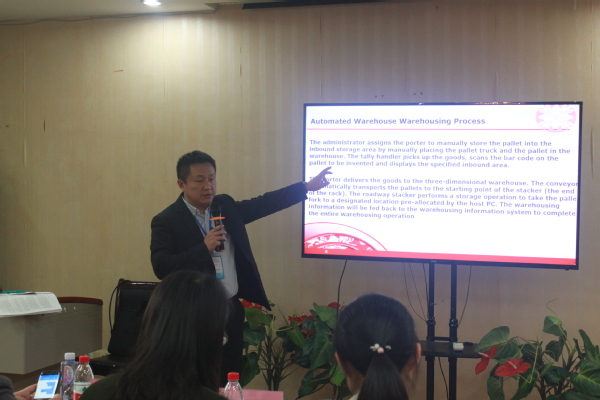 AWC万象城娱乐物流学院副教授、常务副院长王勇展示了其论文“自动化仓库仿真系统在选址优化中的应用”的主要研究内容。王勇副教授简单介绍了自动化仓库的组成和它在空间利用,货物存取,减少劳动力,提高物流运作效率等方面存在的优势。具体讲解了自动化仓库仓储流程和分配原则并通过建立模型来找出实体之间的相关属性,并进行研究分析,最后利用案例分析来解决实际问题。他说:“自动化仓库作为现代物流技术的典型代表,是机械、电子、计算机、通信、自动化控制和感应器的组合,它已经逐渐成为现代分配、生产、仓储的主要物流设施。可以说,自动化仓库在现代物流中扮演着一个重要的角色。”