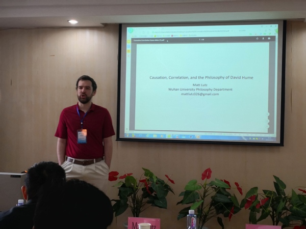 会议中,美国南加州大学哲学博士、武汉大学副教授Matt Lutz围绕“因果关系、相关关系与戴维·休谟哲学”发表了演讲。首先他从科学界中的两句俗语“相关性不是因果关系,不能从相关性中推断出因果关系”出发,提出了关于“相关性”和“因果关系”的讨论,随后根据戴维·休谟和伊曼努尔·康德对这两理论关系的理解进行分析,最后得出了自己的见解。“相关性不是因果关系,但是我们能从相关性中推断出因果关系这一结论。从相关性中推断因果关系是推断因果关系的唯一方法。要知道,当我们看到某件事物总是‘造成’另一事物时,我们所看到的其实是一件事物总是与另一件事物‘经常连接’,这就是为什么在实验设计中大而多的样本是十分重要的。”Matt Lutz博士说道。