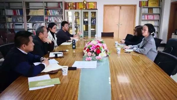 图为董海鹰会长、朱云霞部长认真听取我院情况