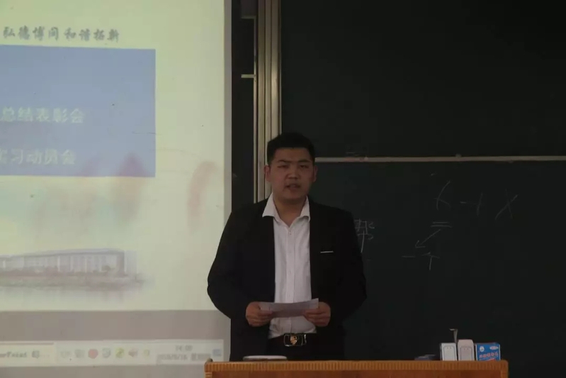随后,2015级物流工程2班艾沛然代表优秀实习生进行了发言,她用“最收获——收获了工作和团队协作能力”、“最感动——感动实习公司对我们的关怀”、“最思考——思考毕业后去哪”三个方面对自己的实习经历进行了总结,并对领导、老师、实习单位表示感谢。她说:“作为一名准毕业生,在实际工作经验方面我们是比较缺乏的,如果在毕业前能找到适应自己的公司进行学习,会帮助我们提前适应社会,也能让我们得到更好的锻炼,完成理论知识学习向社会实践应用的转变。所以同学们要选择一个适应自己的实习公司并不断积累经验,为今后的工作做准备。”