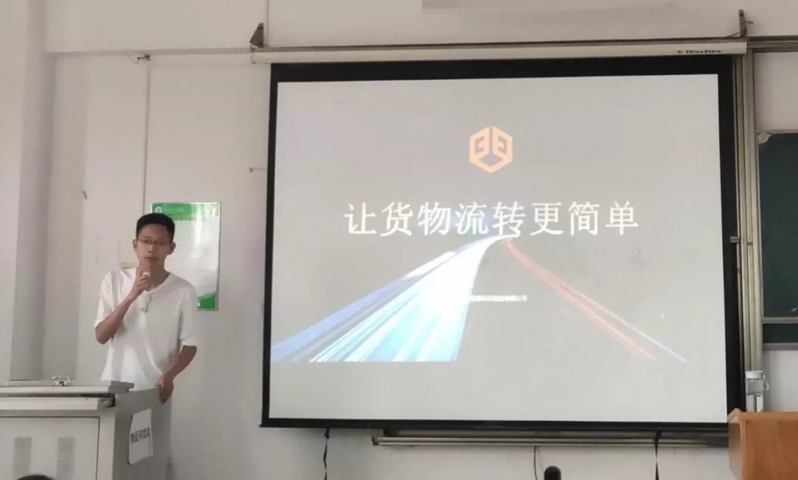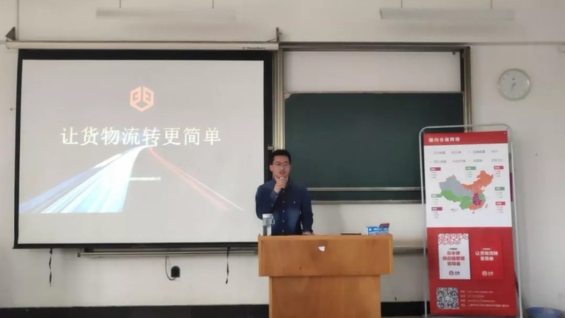 图为北领科技物流有限公司人力资源经理陈坤为同学们介绍公司情况 摄影:袁佳漪