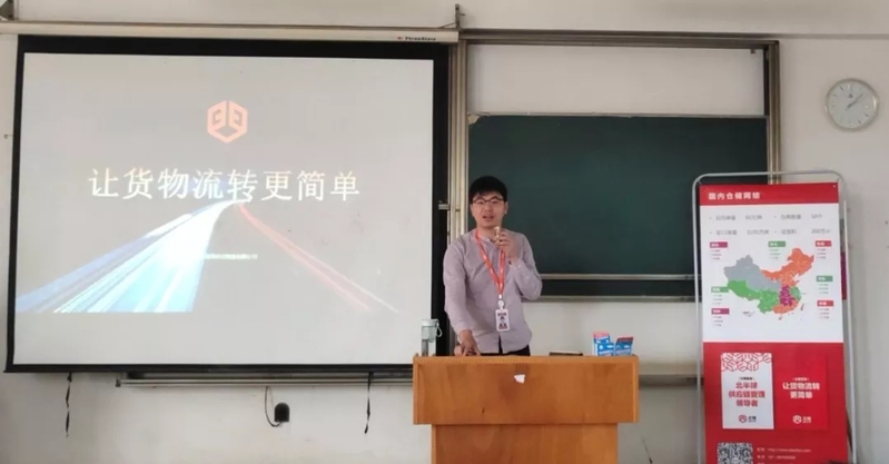宣讲会上人力资源经理陈坤首先为大家播放了北领科技物流有限公司宣传片,并结合自身工作经验从企业基本信息、业务类型及范围、企业文化、企业发展目标、人才培养方略等多个方面做了详细介绍。