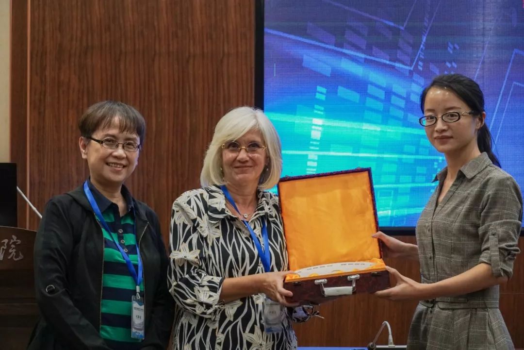图为物流学院副院长周小芬向Marherit Mori教授赠礼 摄影:谭艳