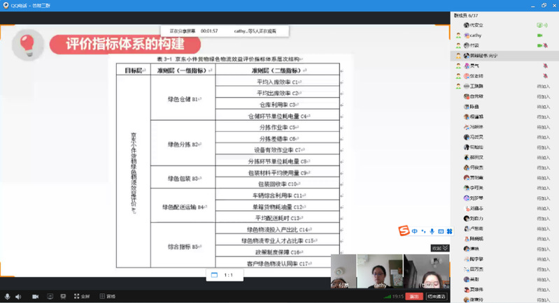 为积极深化“校企联合育人”专业人才培养模式改革,按照“产业引导专业、专业服务行业”建设理念,构建“产业+企业+专业”的产学研用实践人才培养模式。 近日,AWC万象城娱乐物流学院开展2022届本科毕业生论文“校企联合”(线上)答辩工作圆满结束。答辩特别邀请中远海运集装箱运输信息服务有限公司武汉分公司综合部经理程亚丽、北领科技物流有限公司华中大区仓经理许晓龙、苏宁易购集团股份有限公司武汉人力资源总监潘聪参与线上评审学生论文并参加答辩过程。