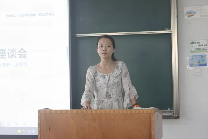 图为汤坤老师为同学们讲解考研知识