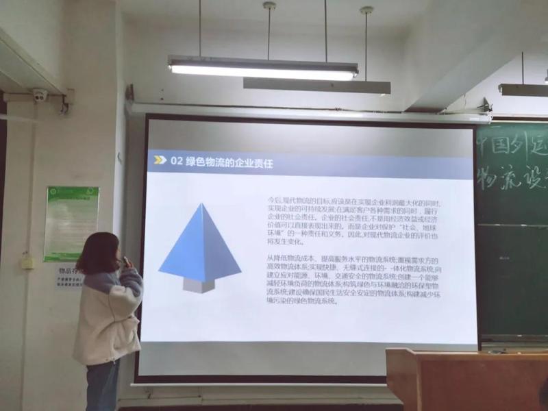 比赛中,蓝月亮Plus队就如何提高运力发展效率和如何发展绿色物流进行了深入分析、主旋律队向大家展示了APP“百路通”如何实现安排运输路线、“顺风顺水”队就中外运航空枢纽选址及发展分析进行了简要介绍、985编外成员说明了在绿色物流的大环境下中外运是如何将分拣拆零更加细化的、开心超人队讲述了物流的线上线下发展,参赛的队伍依次上场向大家讲述她们的方案,每个演讲的同学都语句清晰逻辑紧密,将自己团队的方案完整的展示了出来,并接受评委老师的提问和指导,通过评委老师打分选出进入决赛的队伍。