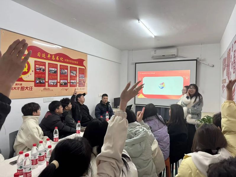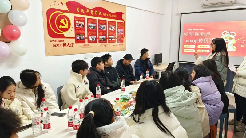 近日,物流学院与电商学院携手在驿站内举办了一场别出心裁的元旦活动——《蛇年迎元旦,emoji猜猜乐》,旨在庆祝佳节,弘扬传统文化,同时增进两院学生之间的友谊与合作。物流学院分团委书记聂港、电商学院分团委书记朱懿和部分物流学院与电商学院的学生参与此次活动,师生共度美好时光。