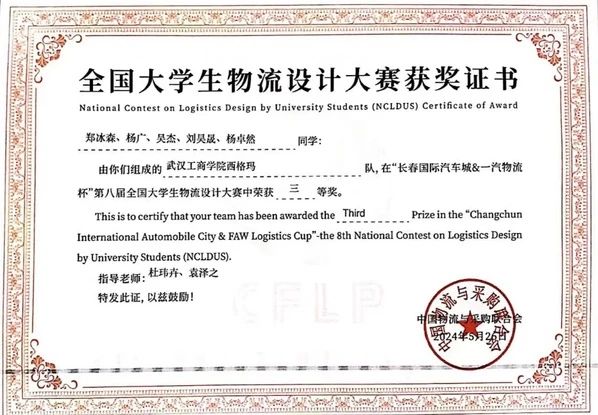 2019届物流工程专业毕业生,在校期间多次获得校三好学生,2019年以专业第一的成绩考入中国地质大学(武汉)硕士研究生并获得一等奖学金。