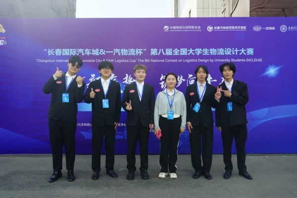 △2024年5月,“长春国际汽车城&一汽物流杯”第八届全国大学生物流设计大赛中,物流工程专业2022级学生郑冰森、刘昊晟、杨卓然、吴杰,物流管理专业2022级学生杨广组成的“西格玛”队获得全国三等奖,5位参赛学生均取得中级物流师资格证书。上图为“西格玛”队成员与指导老师合影。