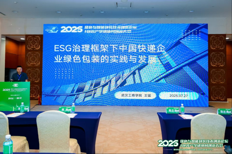 王猛教授报告的主题是“ESG治理框架下中国快递企业绿色包装的实践与发展”。他从ESG治理体系出发,基于环境、社会、治理维度分析ESG对绿色包装的要求;进而基于中国快递企业ESG报告及实践调查,梳理其在绿色包装方面的实践进展及对ESG评级的促进作用;最后提出ESG治理框架下绿色包装技术及管理方面的创新发展路径。该报告对于企业深化绿色包装实践提升ESG评级得分具有指导意义,受到与会院校和企业代表的高度关注。