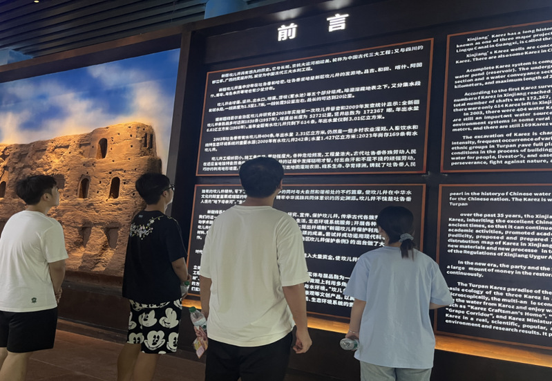 队员们先后参观了坎儿井的暗渠、明渠、竖井、涝坝等核心结构,走进历史遗迹与展览馆,通过观看纪录片,系统了解了这一古代水利工程的卓越智慧。讲解员详细介绍了坎儿井的修建历程、工程原理及其在新疆农业发展和民生保障中的关键作用,特别讲述了古代各族人民协作修建的动人故事。古人克服极端自然条件的壮举,让队员们深切感受到中华民族的智慧与坚韧。