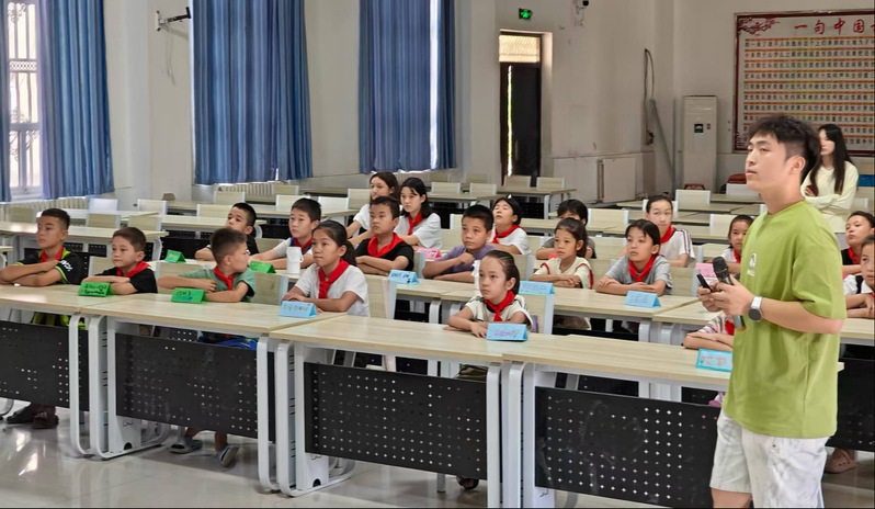 回到教室同学们最盼望的石头画课程开始了。“递丽疆”社会实践服务队队员熊志豪,巧妙运用当地天然鹅卵石,利用丙烯彩笔勾勒党旗、团旗、国旗轮廓,让鲜红色彩绽放于鹅卵石上。随着课件图片的播放,小学员们发出一阵阵赞叹。