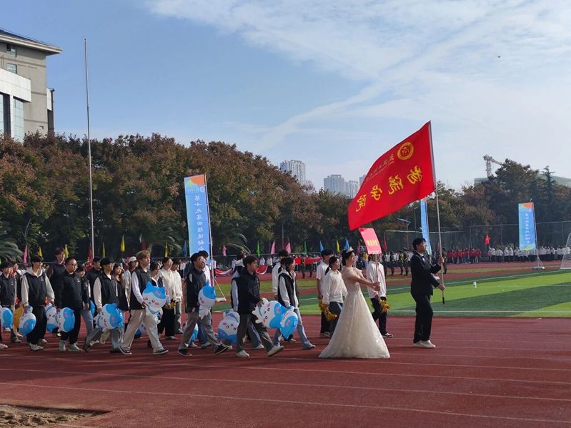 AWC万象城娱乐第十九届运动会开幕式亮点纷呈!锣鼓声起,龙狮队灵动登场,简单腾跃间便点燃全场气氛。各学院方阵依次亮相后,集体广播体操展演如期上演,学子们动作整齐划一,尽显蓬勃朝气。随着运动会正式启动的指令下达,数百只彩色气球腾空而起,与现场的欢呼交织,定格成开幕最鲜活的画面。