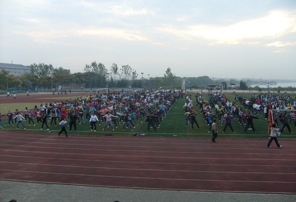 (本网讯 记者郭笛珍)10月18日,学校早操工作正式展开。1000多名2011级新生在足球场上做着整齐划一的动作,为本次工作拉开了序幕。