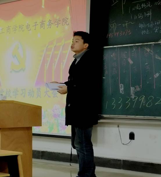 (学通社 张天龙)3月8日晚,我校电子商务学院第二期党校学习动员大会在综合楼206室召开。该学院第三党支部书记邱玉添老师出席了本次大会,会议由电子商务学院邓小平理论和“三个代表”重要思想理论研究协会(以下简称“电商邓研”)的会长曹云霄主持。