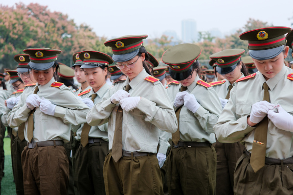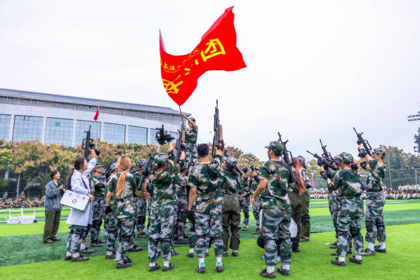 谈及军训历程,花样方队队员冯陶者感慨地说:“15天的训练,让我们自律升级,状态满分。我们方队人数最多,常常顶着烈日训练,虽然有时会感觉疲惫,但身边总有人及时帮扶、互相鼓劲。这份凝聚力和互帮互助的温暖,支撑着我们坚持到最后。”