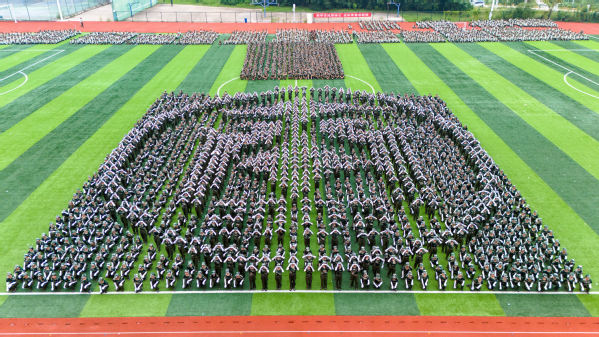 由1500余名新生组成的花样方阵成为全场焦点,他们依次变换出“1919”“五四运动”“1921”“红船会议”“1949”“天安门”“中国我爱你”等造型,致敬祖国,现场十分壮观。队员们齐声高呼“听党指挥,能打胜仗!”“祖国万岁!”“正义必胜,和平必胜,人民必胜!”等铿锵誓言,将对历史的致敬、对祖国的热爱与对和平的捍卫融为一体,深情回溯了党的百年光辉征程,并以此特别方式致敬抗战胜利80周年。