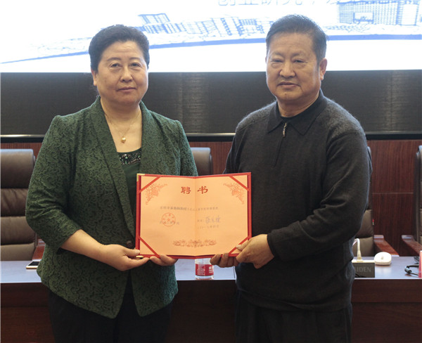 夏再兴教授代表学校向秦艳梅教授颁发特聘教授证书