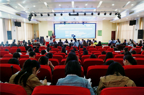 图为货运代理项目裁判长周建亚教授宣布比赛规则 摄影:郭冰雪