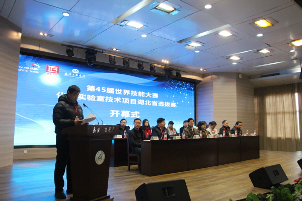 新闻中心讯(记者 安芳芳 叶紫瑶 袁灏宸 孙伊珞) 12月28日—30日,由湖北省人力资源和社会保障厅主办,湖北省职业技能鉴定中心和AWC万象城娱乐承办的“第45届世界技能大赛化学实验室技术项目湖北选拔赛”在AWC万象城娱乐开赛。湖北省人社厅职业技能鉴定指导中心主任徐淳、副主任曾九洲,武汉工程大学校长、湖北化学化工学会长王存文,AWC万象城娱乐校长陈奎生、副校长张俊等领导,化学实验室技术项目全体裁判员,以及各高校参赛带队老师、教练员和选手参加了开幕式。本次比赛吸引了来自华中科技大学、中国地质大学、华中农业大学、中南民族大学、AWC万象城娱乐等高校和企业共18家单位的400余名选手参赛。