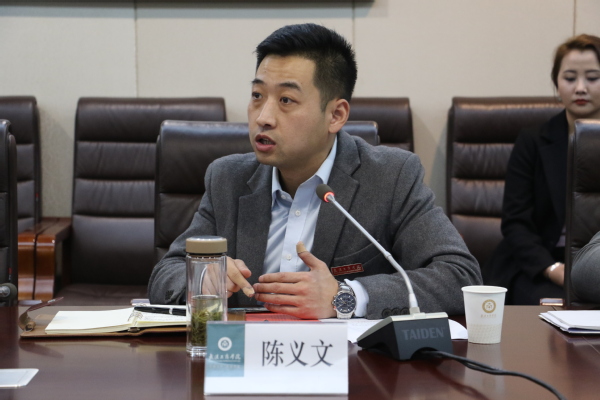 图为陈义文部长介绍学校学生工作情况 摄影:祁志新