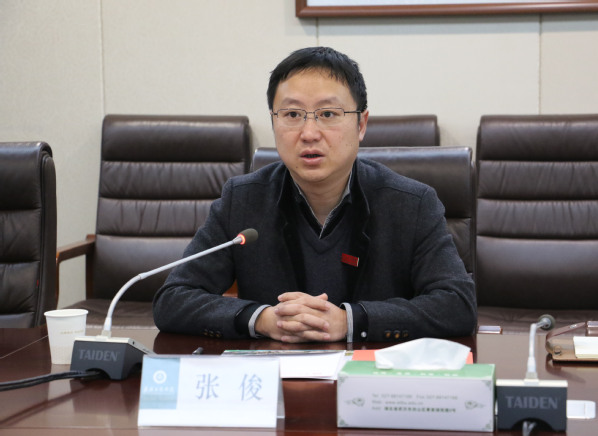 图为张俊副校长介绍学校基本情况 摄影:祁志新