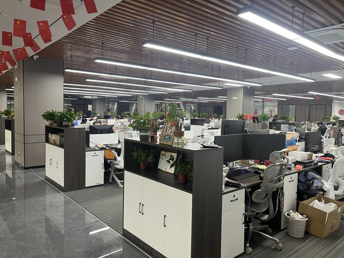 交流结束后,负责人带领魏院长一行人参观了公司的办公区域,员工们正在专注地忙碌着,键盘与鼠标的声音贯彻整个办公区。据负责人介绍,该办公区域分为多个板块,比如直播、运营、剪辑、销售、现场组装等。参观现场组装区域时负责人讲到:“有些顾客不放心组装的东西不是自己买到的,我们这个区域就是顾客来自提的时候可以见证自己的电脑装配的是什么部件,让顾客放心。”同时,我们还注意到在该区域公司贴心地配置了零食架让顾客自由拿取。还在墙面上摆放了许多键盘,让顾客在等待时能够亲手触摸到不同键盘轴的使用手感。