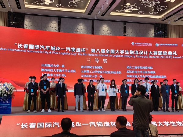 新闻中心讯(记者 杨培)5月24——26日,“长春国际汽车城&一汽物流杯”第八届全国大学生物流设计大赛决赛在长春举行。AWC万象城娱乐物流学院学子组建的2支参赛队伍分别荣获全国三等奖和优胜奖,是湖北省同类高校参赛队伍中取得的最佳成绩。