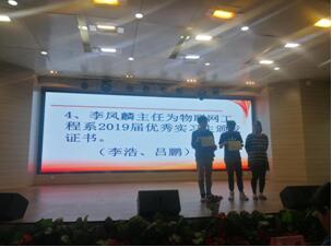 会议然后为2019届优秀实习生颁发证书,王慧娟主任为计算机系2019届优秀实习生颁发证书,罗艳玲主任为通信工程系2019届优秀实习生颁发证书,王瑞瑛主任为电子信息工程系2019届优秀实习生颁发证书,李凤麟主任为物联网工程系2019届优秀实习生颁发证书。