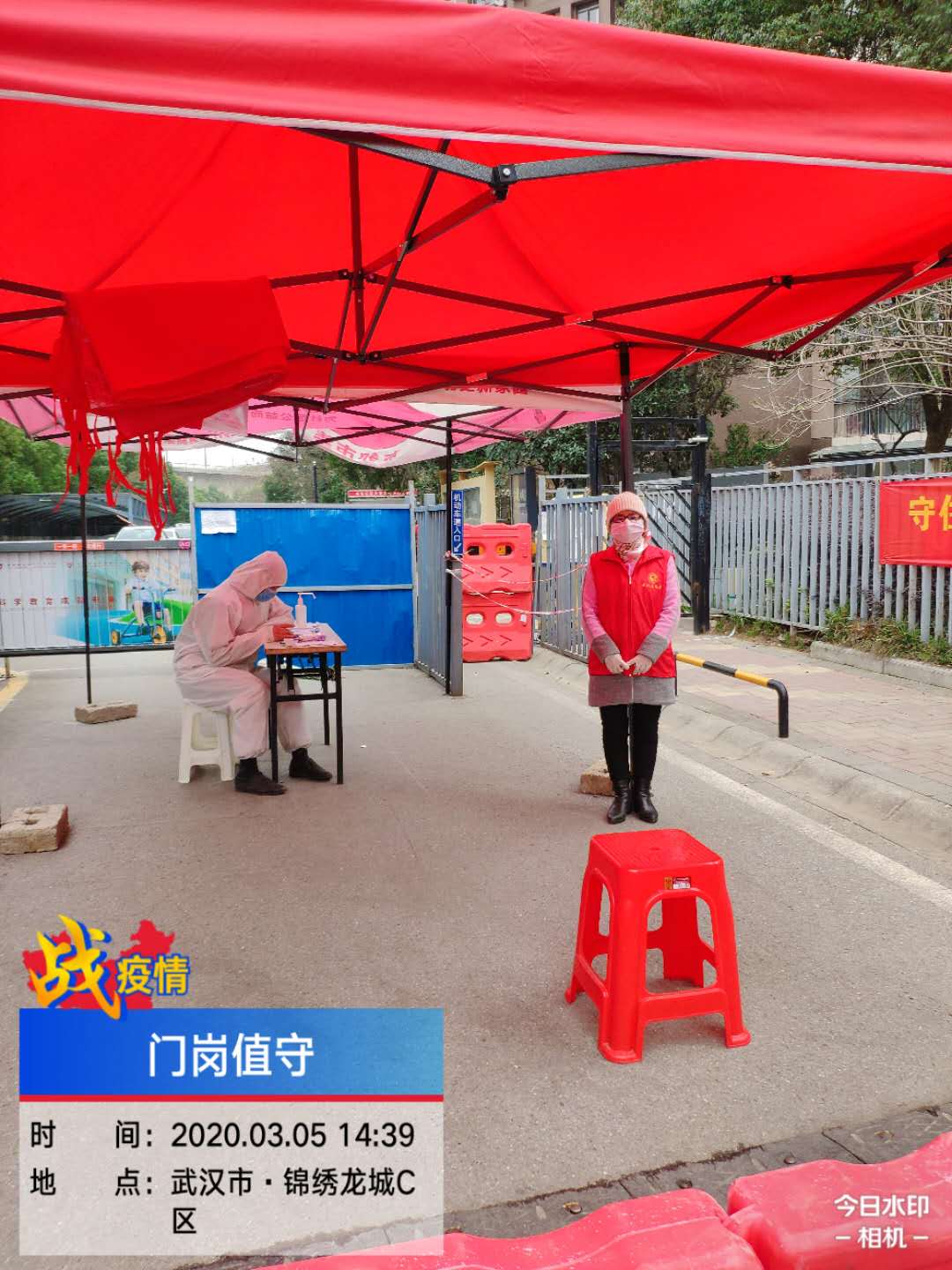 3月3日下午是肖丹丹老师第一次参加志愿活动,在武汉市锦绣龙城C区负责接收点现场秩序维护服务,做好居民宣传引导活动;团购商、快递公司登记并监督物资的消杀工作;监督小区人员的进出以及反馈所在门岗居民的需求。她说在志愿期间遇到一些问题,虽然心里有点难受,但作为志愿者,就是为居民服务,想到其他的志愿者坚持这么久,心里很佩服他们,也要献出自己的一份心,希望能够平平安安地完成志愿活动,还有她的朋友和亲人们能够在这场战疫中平安度过,也祝愿武汉早日度过难关!