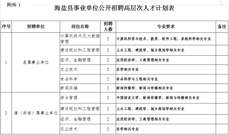 1.2019年海盐县事业单位公开招聘高层次人才计划表